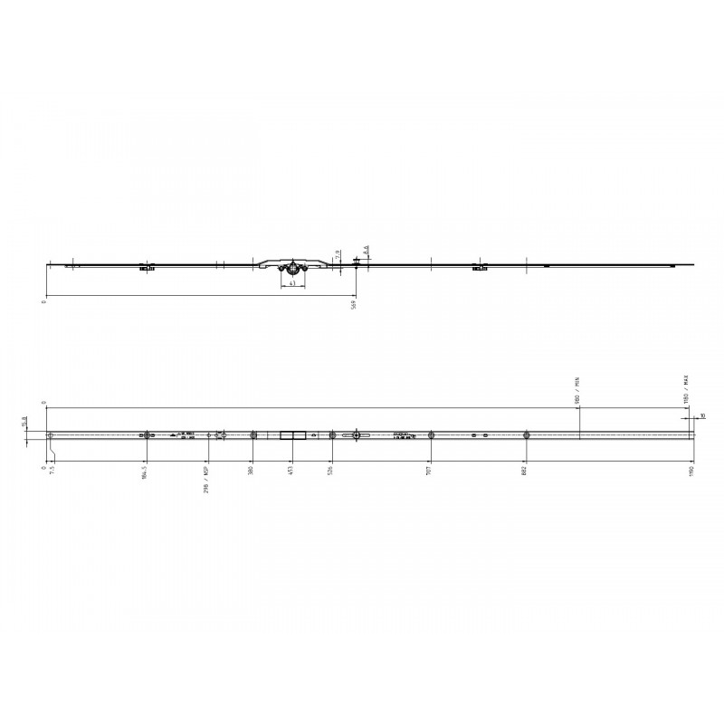 Crémone OB KSR F8 L1290 HP563 avec 1 galet champignon