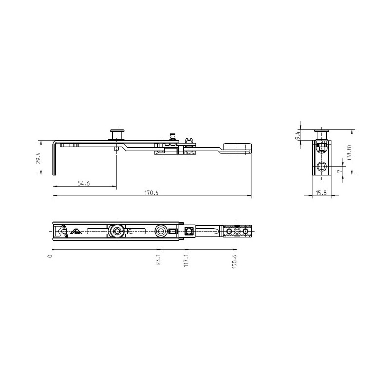 Prolongateur de longueur 110 mm, avec 1 galet champignon et sortie de tringle