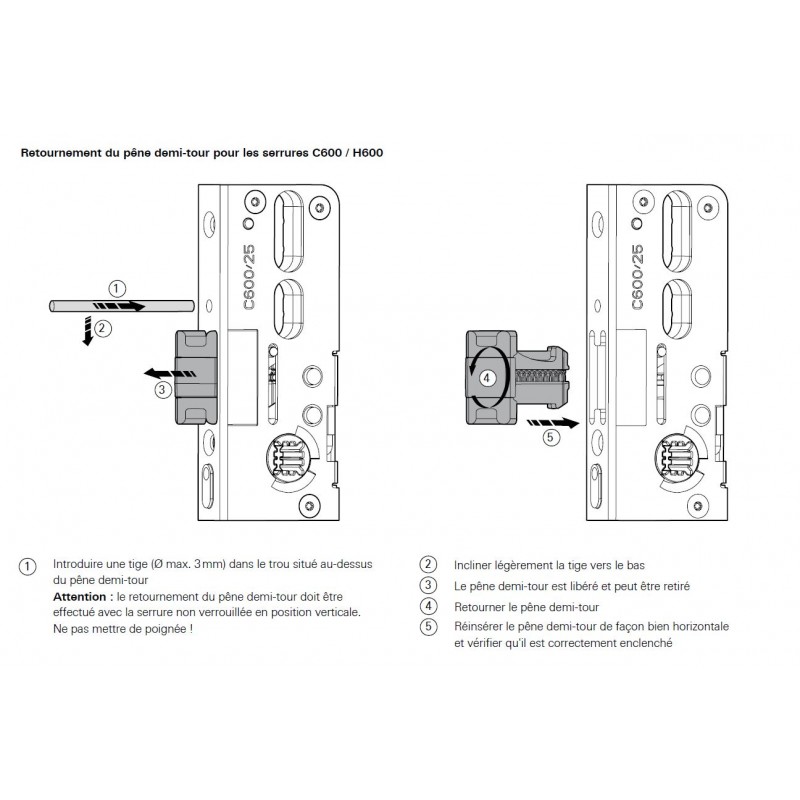Serrure C600 35/92/8, têtière U de 24 mm, longueur 2200 mm, avec 2 pênes crochets+goujons