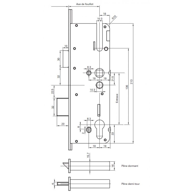 Verrouillage 3 points : 1 pêne dormant + 2 boîtiers à pêne automatique