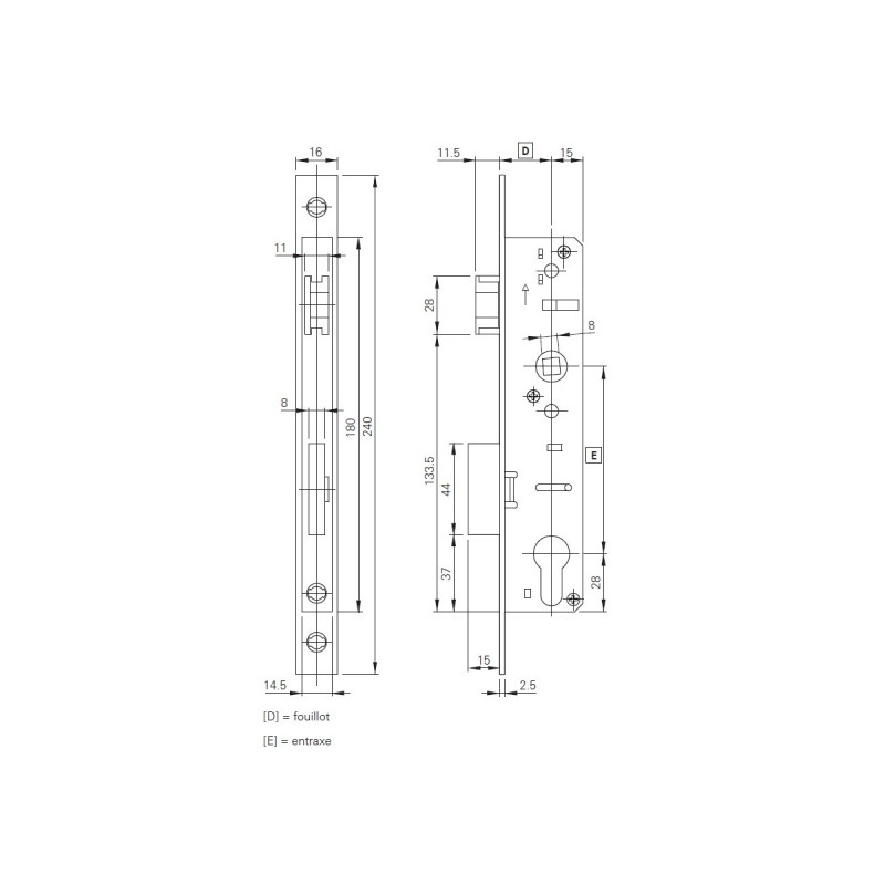 Serrure 1 point 40/92/8 avec têtière de 16 mm