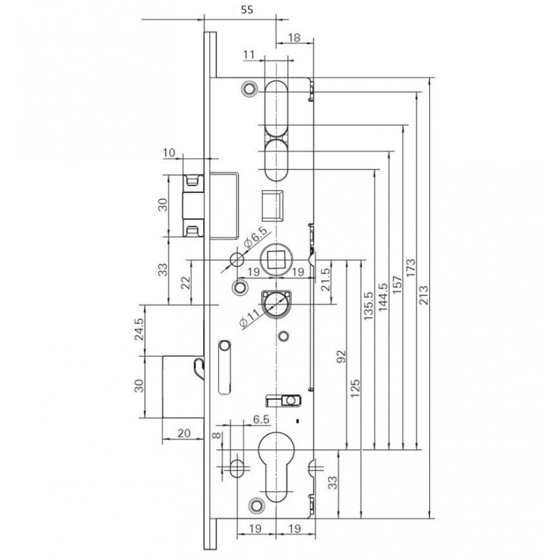 Serrure H650 55/92/8, têtière de 16 mm, longueur 2200 mm, avec 2 boîtiers goujon et un verrouillage supplémentaire