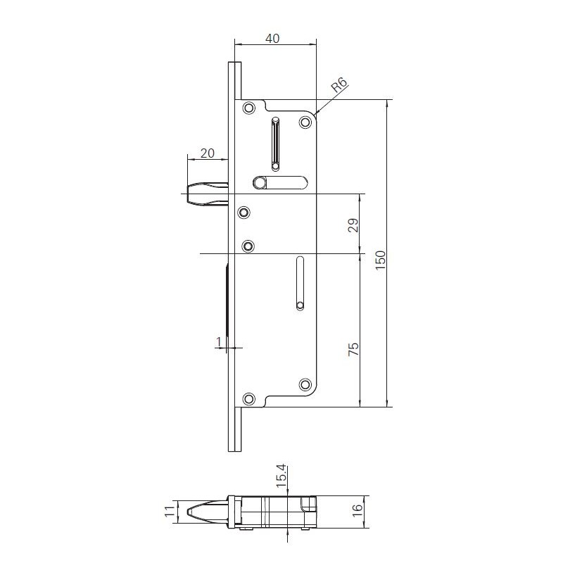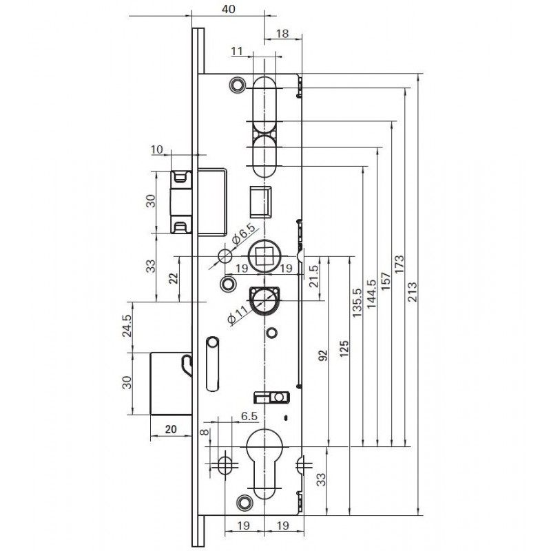 Serrure H600 40/92/8, têtière de 16 mm, longueur 2200 mm, avec 2 pênes goujons